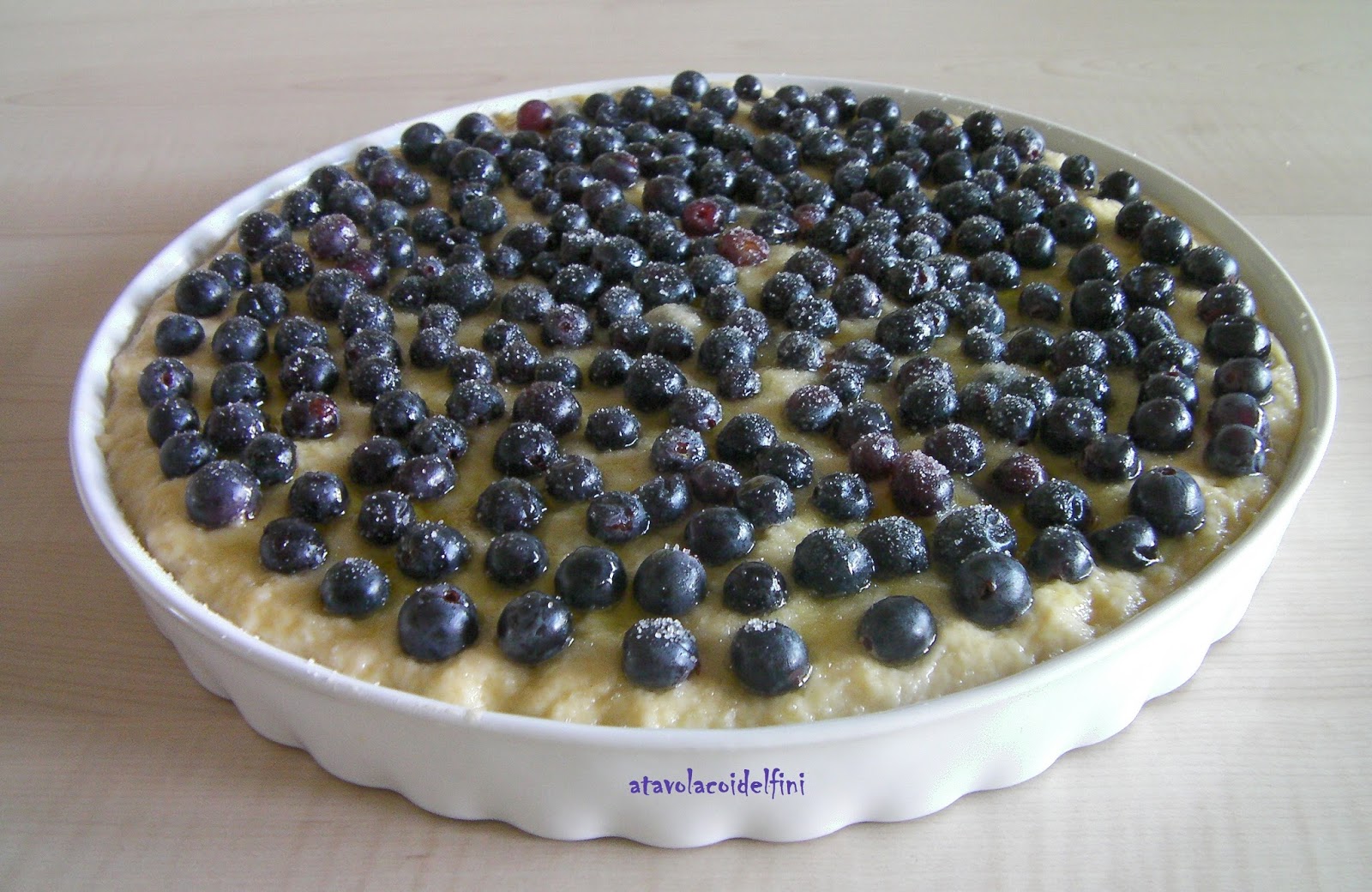 Stendere in una tortiera di ceramica da 30 cm di diametro e unta d’olio, metà dell’impasto, ricoprire con abbondante uva, polverizzare con zucchero grezzo di canna, ricoprire con l’altra metà dell’impasto e chiudere bene. Adagiare schiacciando gli altri acivi di uva, polverizzare ancora con zucchero grezzo di canna e rifinire con un giro di olio. Far lievitare per 20 minuti circa.